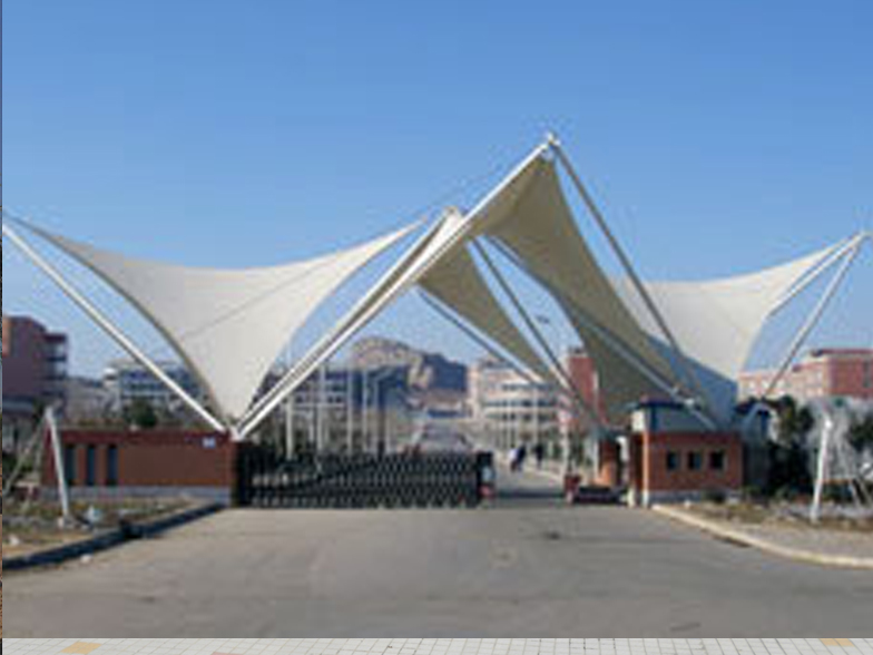 景觀膜結(jié)構(gòu)又稱張拉膜景觀,主要通過膜結(jié)構(gòu)的張拉式 呈現(xiàn)出唯美的結(jié)構(gòu)特征;膜材料是指聚酯纖維基布或PVDF、PVF、PTFE等不同的表面涂層,配以優(yōu)質(zhì)的PVC組成的具有穩(wěn)定的形態(tài),并可承受一定載荷的建筑紡織品。它的壽命因不同的表面涂層而異,一般可達(dá)成10-20年;其外觀整潔大方,自潔性強(qiáng)。主要應(yīng)用于各大公園,世博園,和一些廣場,商場等場所。
