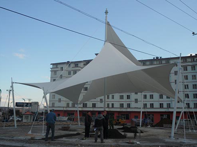 景觀膜結構 景觀膜結構又稱張拉膜景觀,主要通過膜結構的張拉式 呈現(xiàn)出唯美的結構特征;膜材料是指聚酯纖維基布或PVDF、PVF、PTFE等不同的表面涂層,配以優(yōu)質的PVC組成的具有穩(wěn)定的形態(tài),并可承受一定載荷的建筑紡織品。它的壽命因不同的表面涂層而異,一般可達成10-20年;其外觀整潔大方,自潔性強。主要應用于各大公園,世博園,和一些廣場,商場等場所。