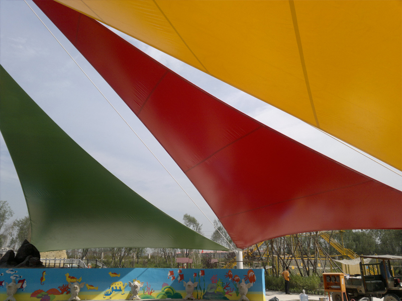 景觀膜結(jié)構(gòu)又稱張拉膜景觀,主要通過膜結(jié)構(gòu)的張拉式 呈現(xiàn)出唯美的結(jié)構(gòu)特征;膜材料是指聚酯纖維基布或PVDF、PVF、PTFE等不同的表面涂層,配以優(yōu)質(zhì)的PVC組成的具有穩(wěn)定的形態(tài),并可承受一定載荷的建筑紡織品。它的壽命因不同的表面涂層而異,一般可達(dá)成10-20年;其外觀整潔大方,自潔性強(qiáng)。主要應(yīng)用于各大公園,世博園,和一些廣場,商場等場所。
