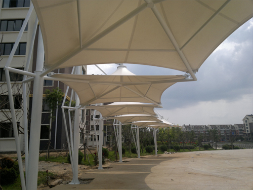 呼和浩特景觀膜結構 景觀膜結構又稱張拉膜景觀,主要通過膜結構的張拉式 呈現出唯美的結構特征;膜材料是指聚酯纖維基布或PVDF、PVF、PTFE等不同的表面涂層,配以優(yōu)質的PVC組成的具有穩(wěn)定的形態(tài),并可承受一定載荷的建筑紡織品。它的壽命因不同的表面涂層而異,一般可達成10-20年;其外觀整潔大方,自潔性強。主要應用于各大公園,世博園,和一些廣場,商場等場所。