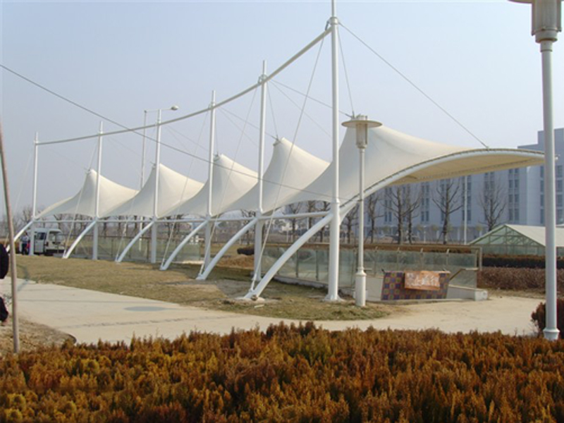 膜結構車棚是膜材料是指聚酯纖維基布或PVDF、PVF、PTFE等不同的表面涂層,配以優(yōu)質(zhì)的PVC組成的具有穩(wěn)定的形態(tài), 并可承受一定載荷的建筑紡織品。它的壽命因不同的表面涂層而異,一般可達成10-20年膜結構車棚是當今比較流行應用的一種車棚,膜材料是指聚酯纖維基布或PVDF、PVF、PTFE等不同的表面涂層,配以優(yōu)質(zhì)的PVC組成的具有穩(wěn)定的形態(tài),并可承受一定載荷的建筑紡織品。它的壽命因不同的表面涂層而異,一般可達成10-20年;其外觀整潔大方,自潔性強。主要應用于各大商場,工廠,政府機關,學校等場所。